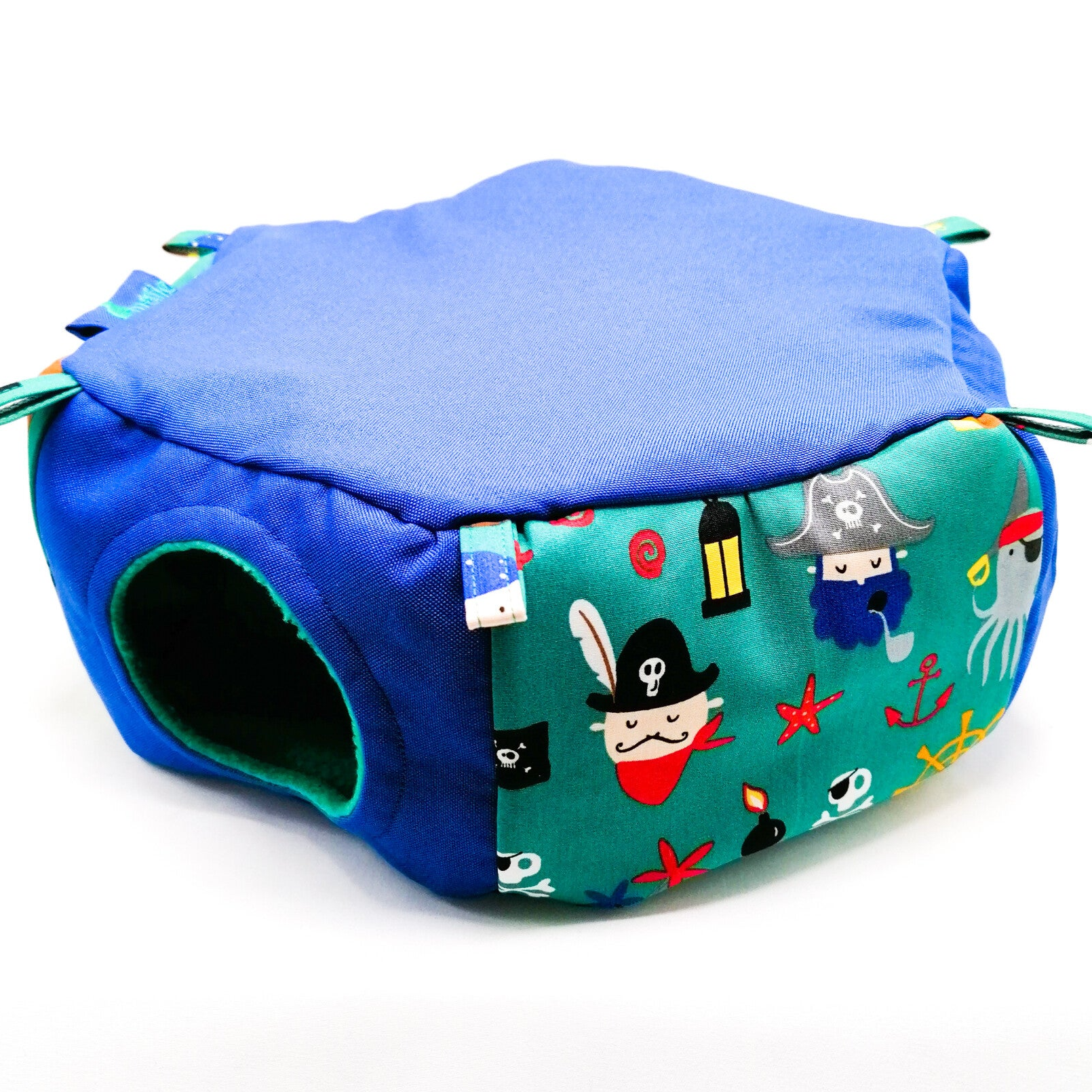 Zeskant huisje met 3 ingangen en 6 stevige ophanglusjes van stof.