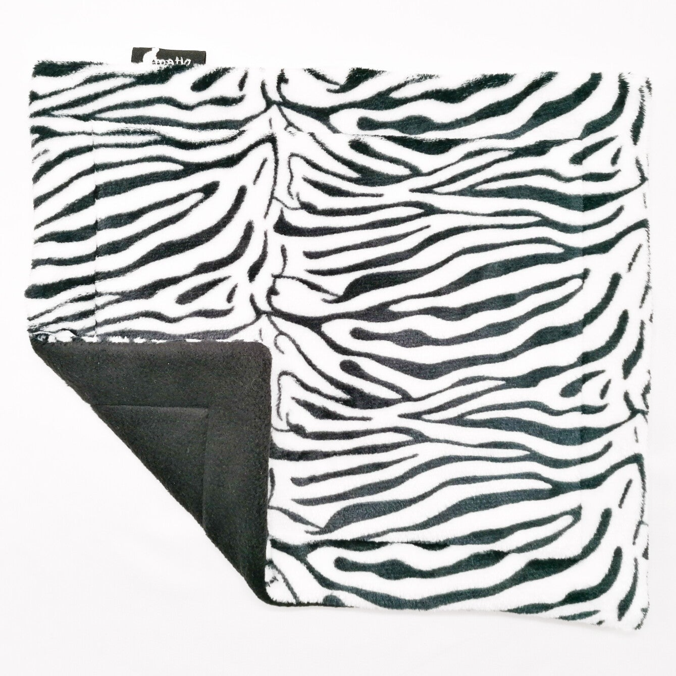 Pee pad ene zijde wit met zwarte zebra print van zachte Coral Fleece.