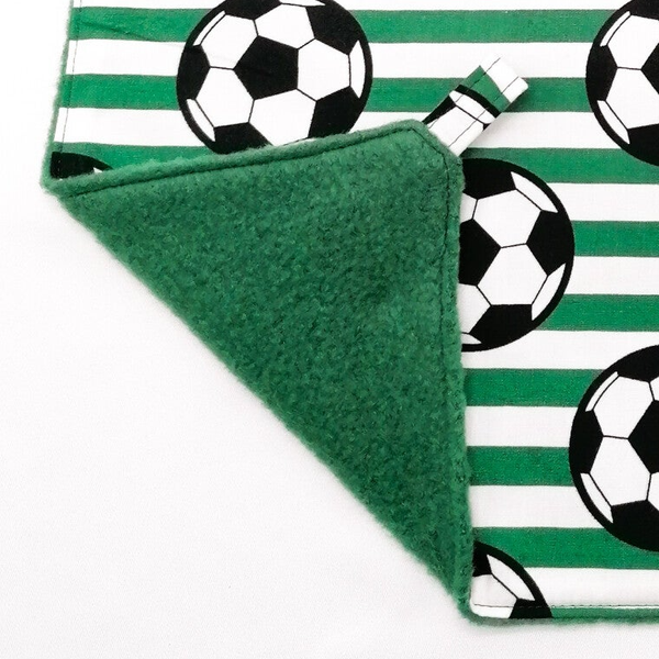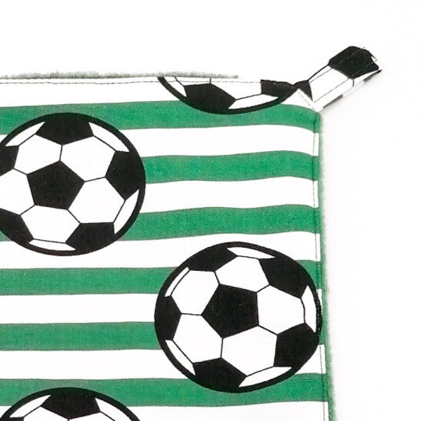 Ene zijde wit / groen gestreept met voetballen