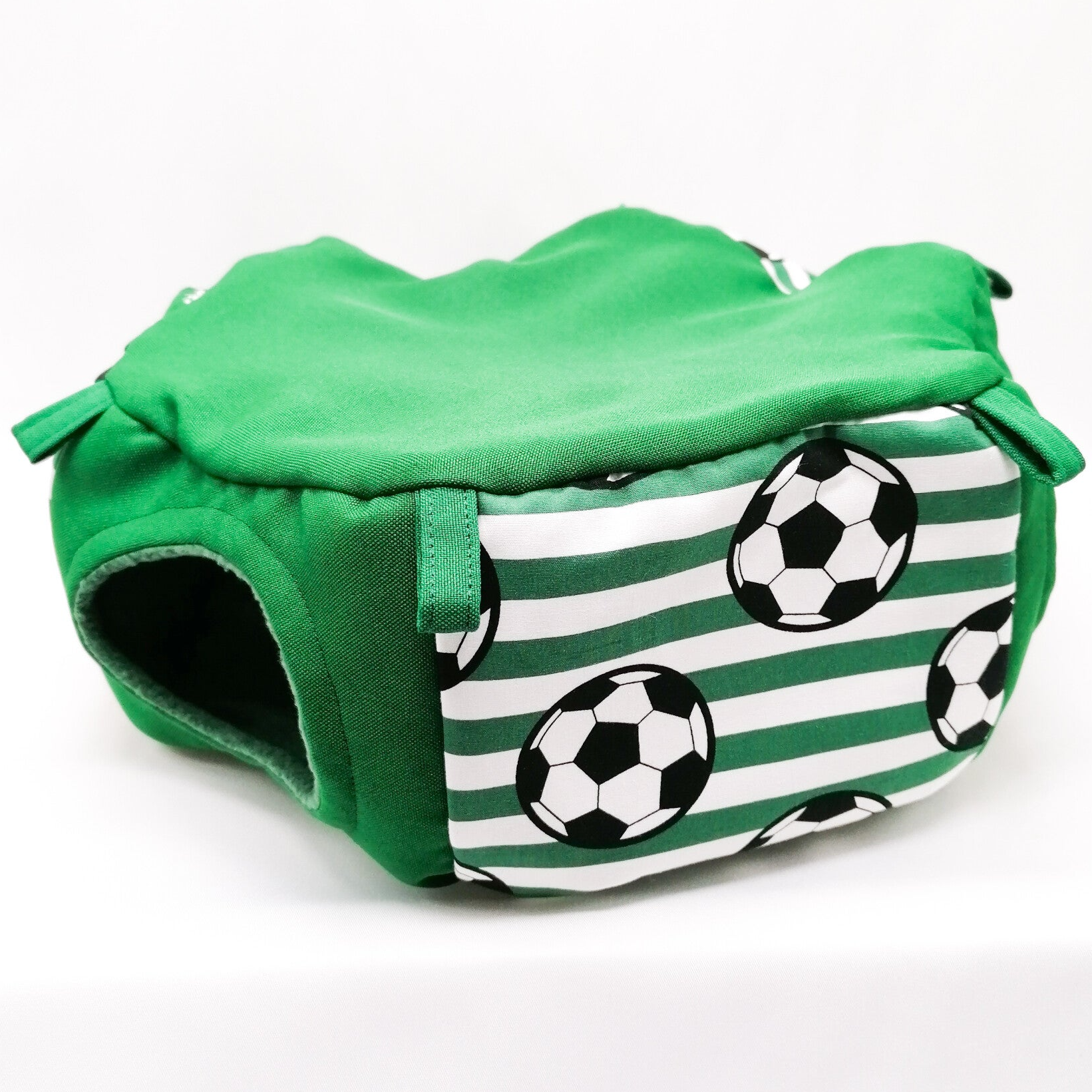 Buitenzijde (zijkant) wit / groen gestreept met voetballen met effen groene stof