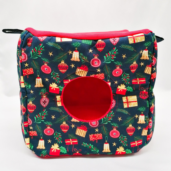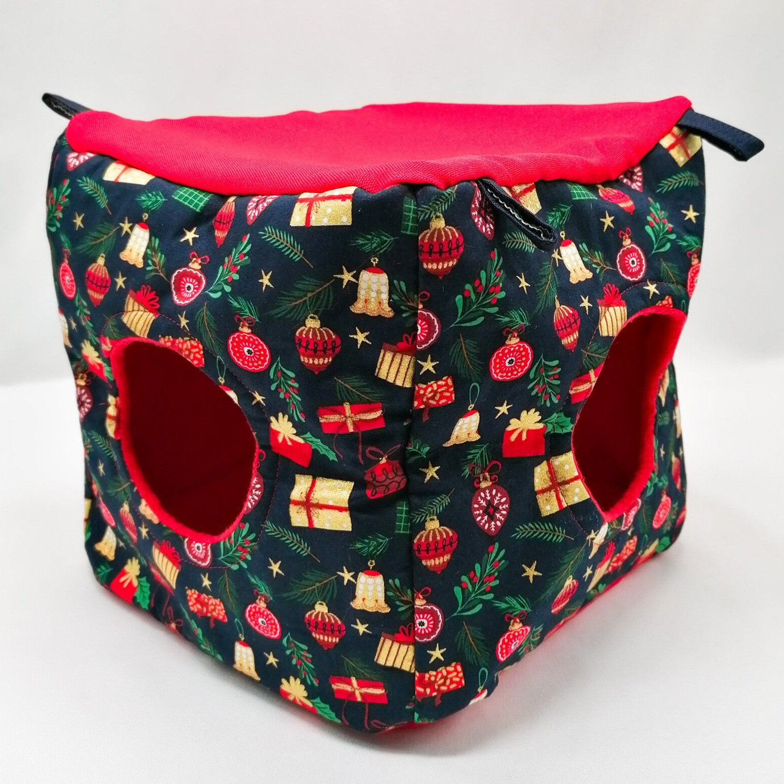 Kubus met 2 openingen en 4 stevige ophanglusjes van stof.