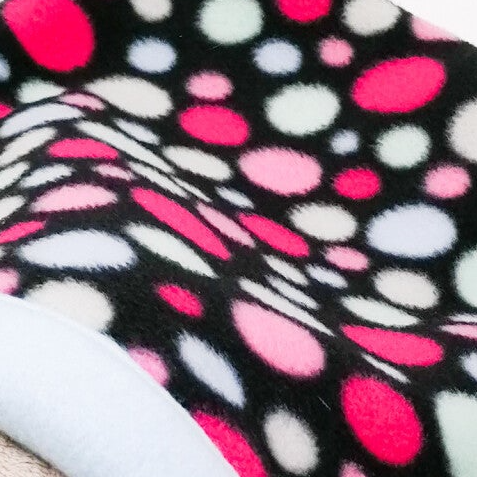 Buitenzijde: Fleece zwart met gekleurde stippen