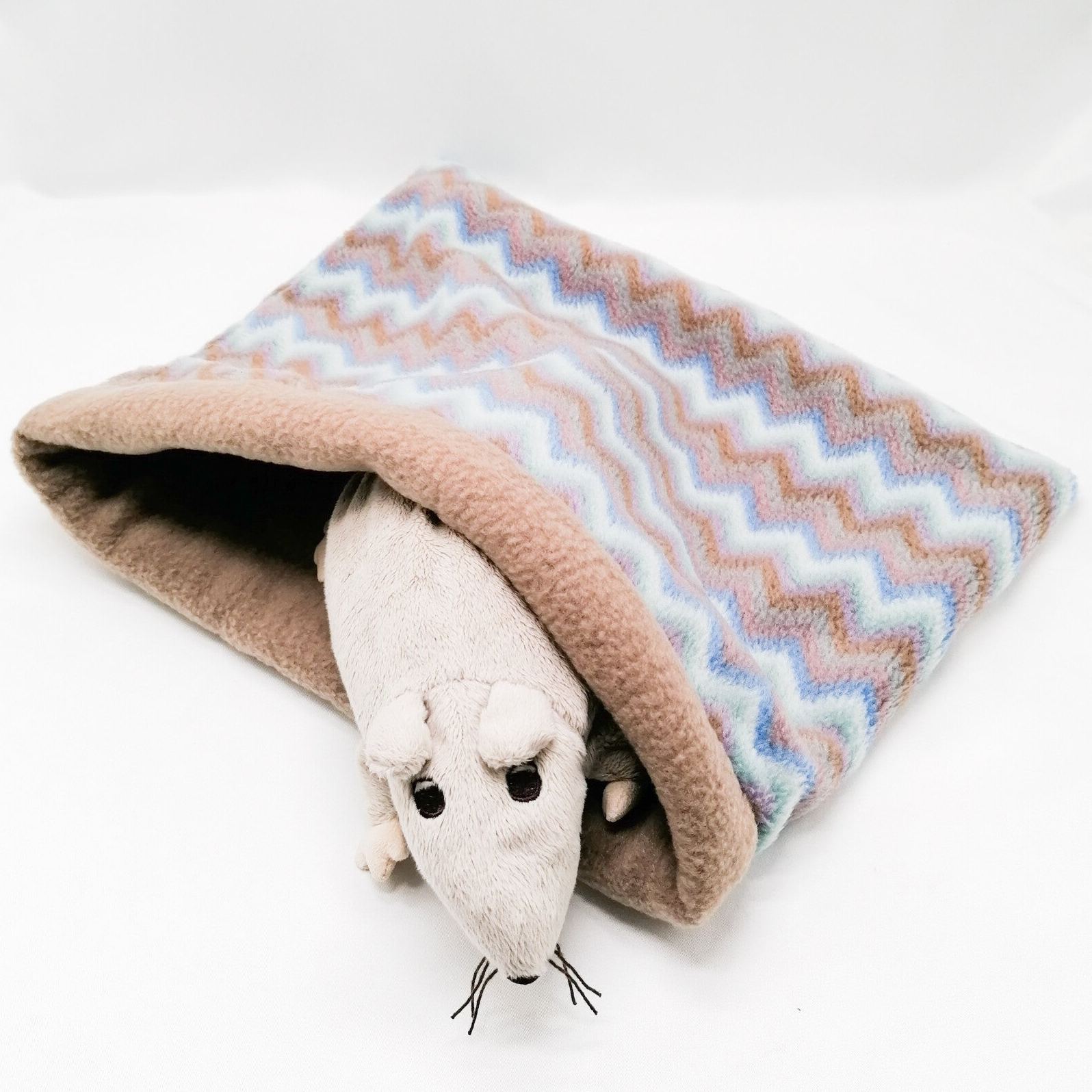 Knuffelzak om lekker met de ratten te knuffelen. Makkelijk op schoot. Het geeft de ratten geborgenheid en je kunt meerdere ratten tegelijkertijd makkelijk vasthouden.