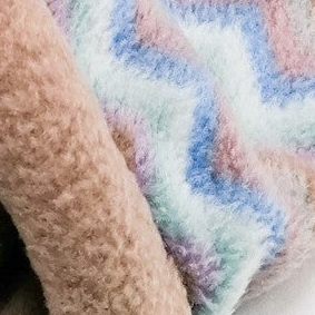 Buitenzijde: Fleece taupe/blauw met zigzagmotief