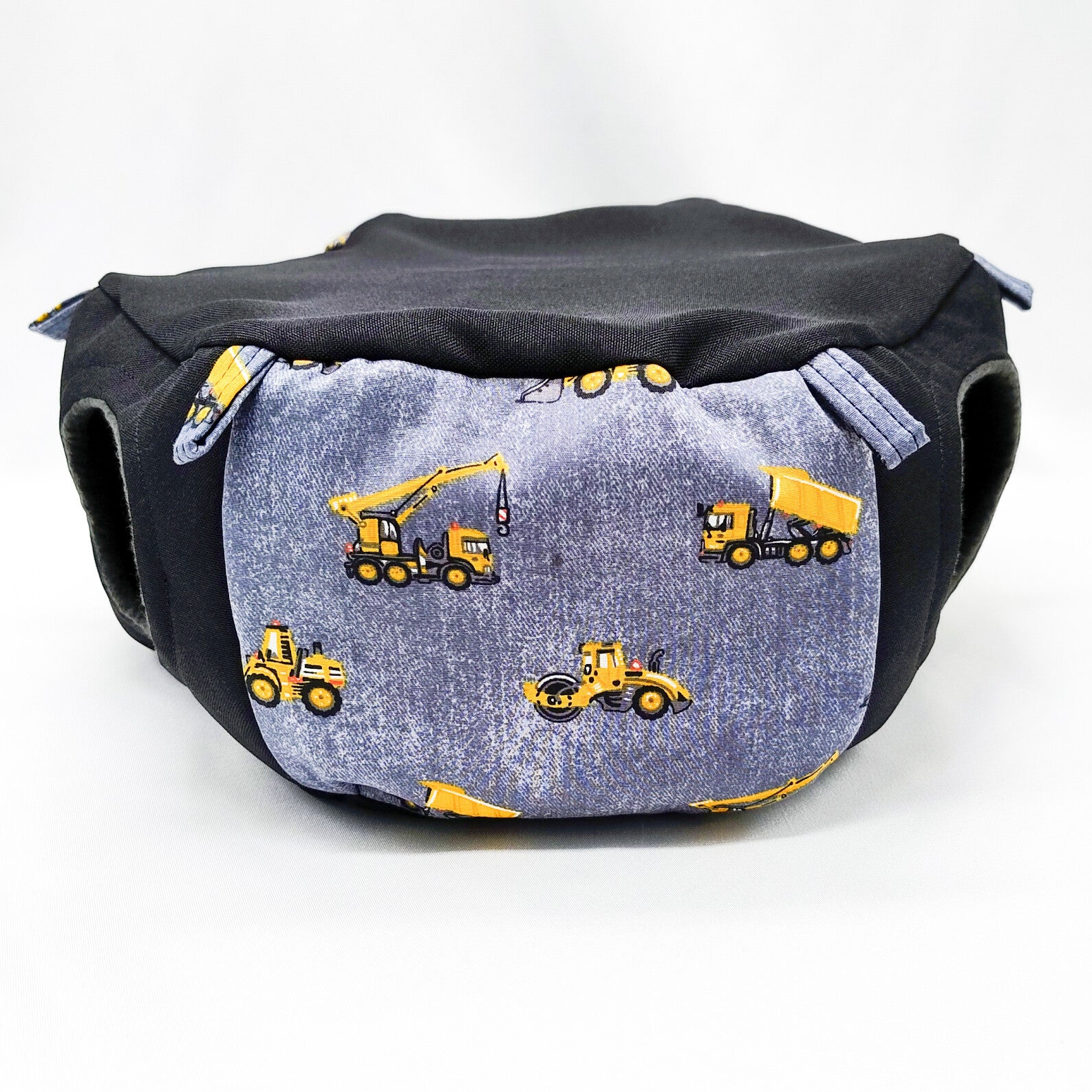 Buitenzijde (zijkant) grijs gemêleerd met werkvoertuigen met zwarte effen stof.