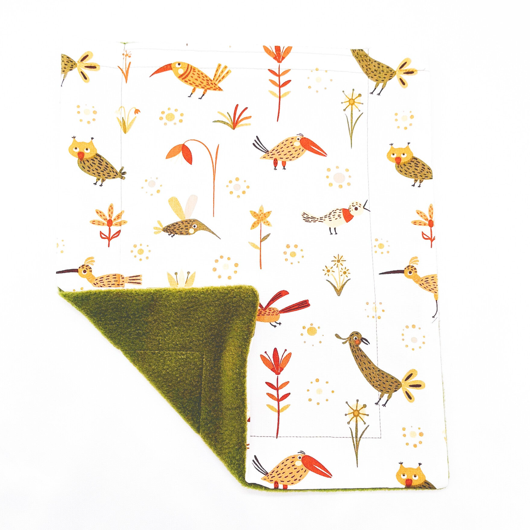 Achterzijde mosgroene fleece stof.