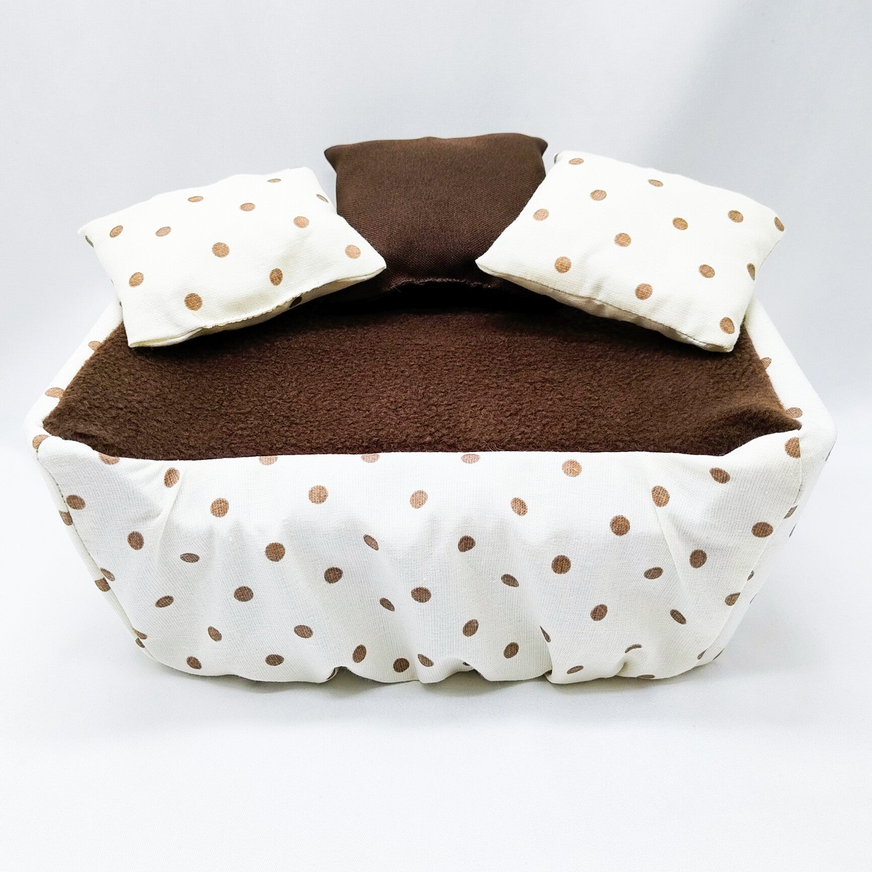 Deze rattensofa M (24 x 17 x 10 cm) is geschikt voor meerdere, 2 ratjes of meerdere kleine rittens of 'dames'.