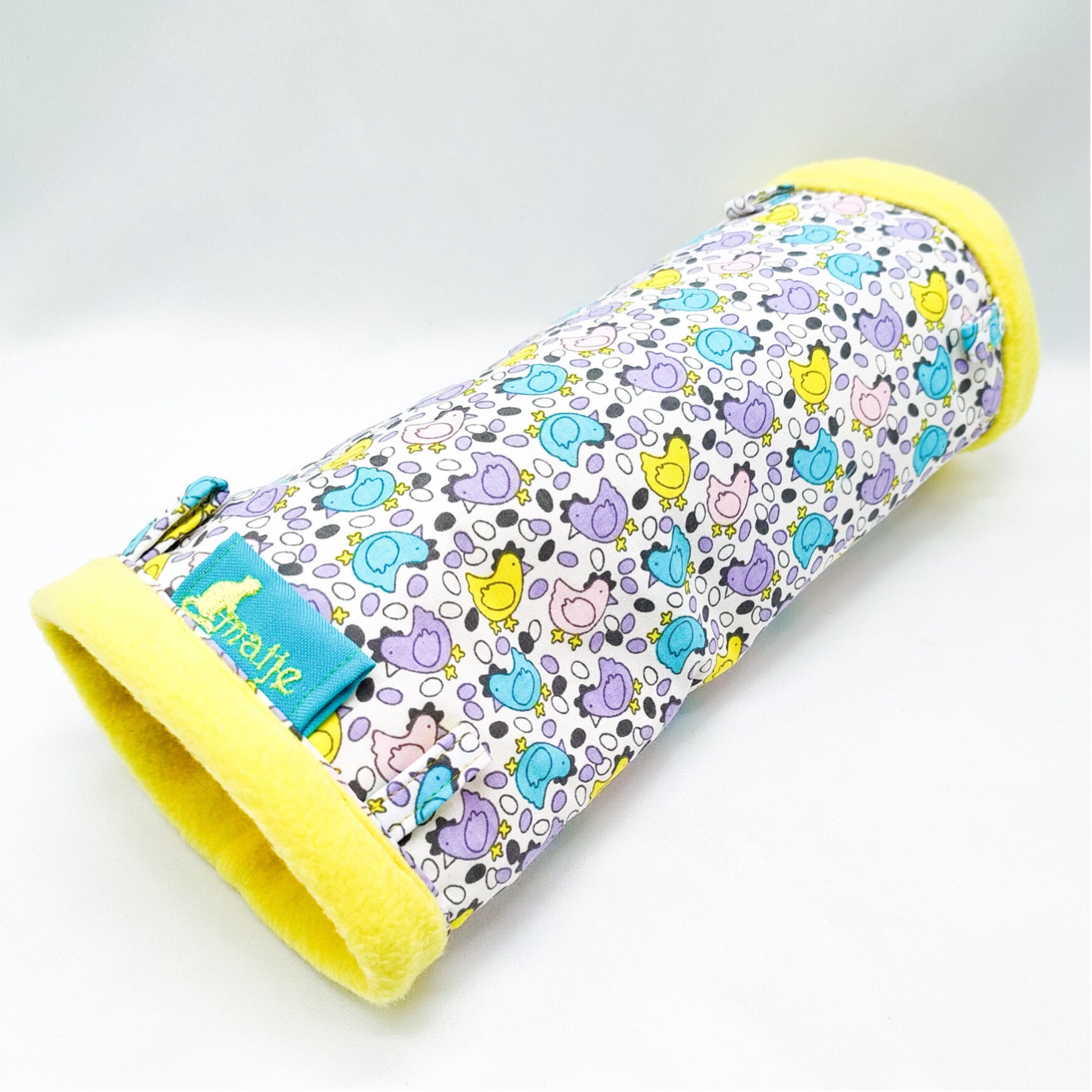 Tunnel wit met gele, aqua en lila kippen