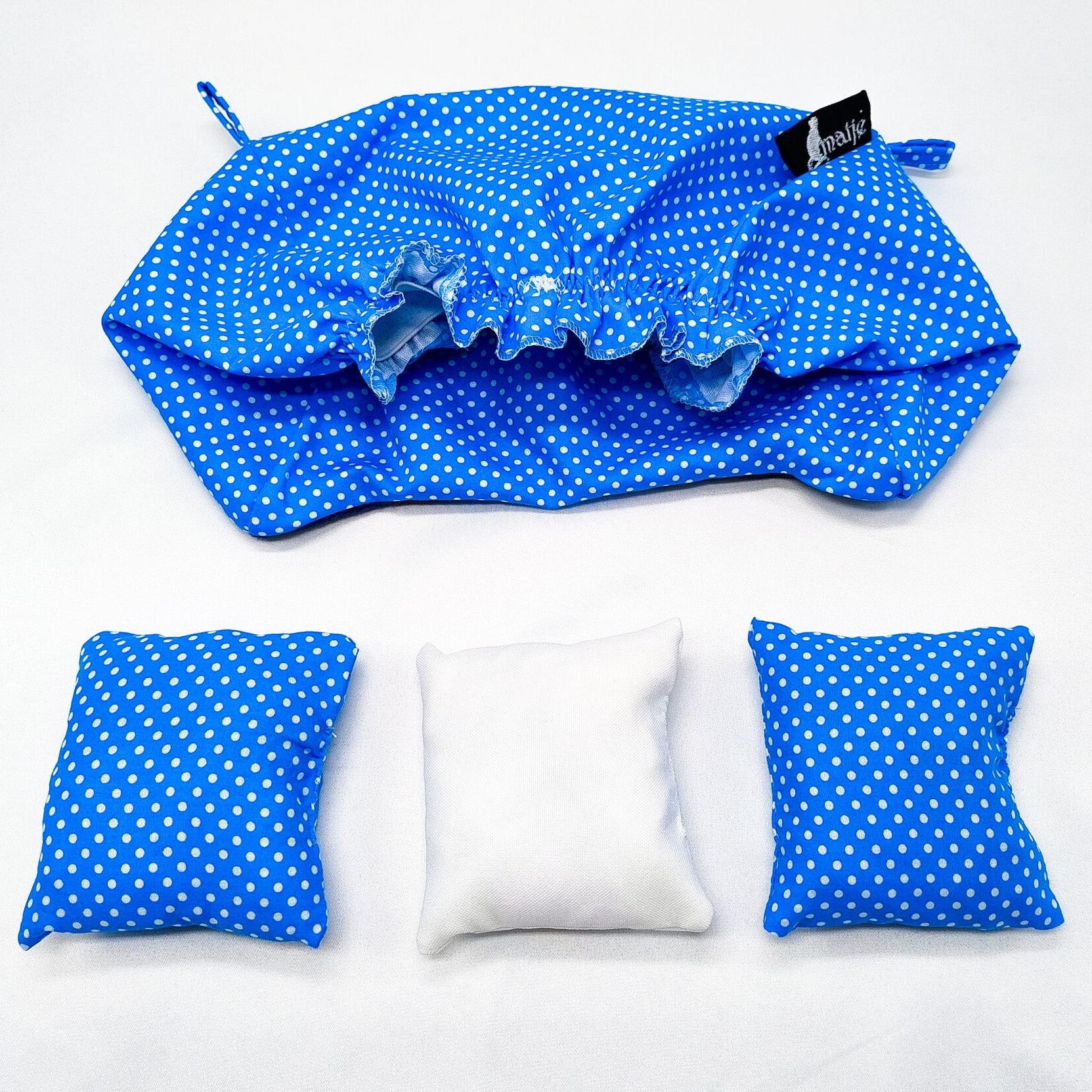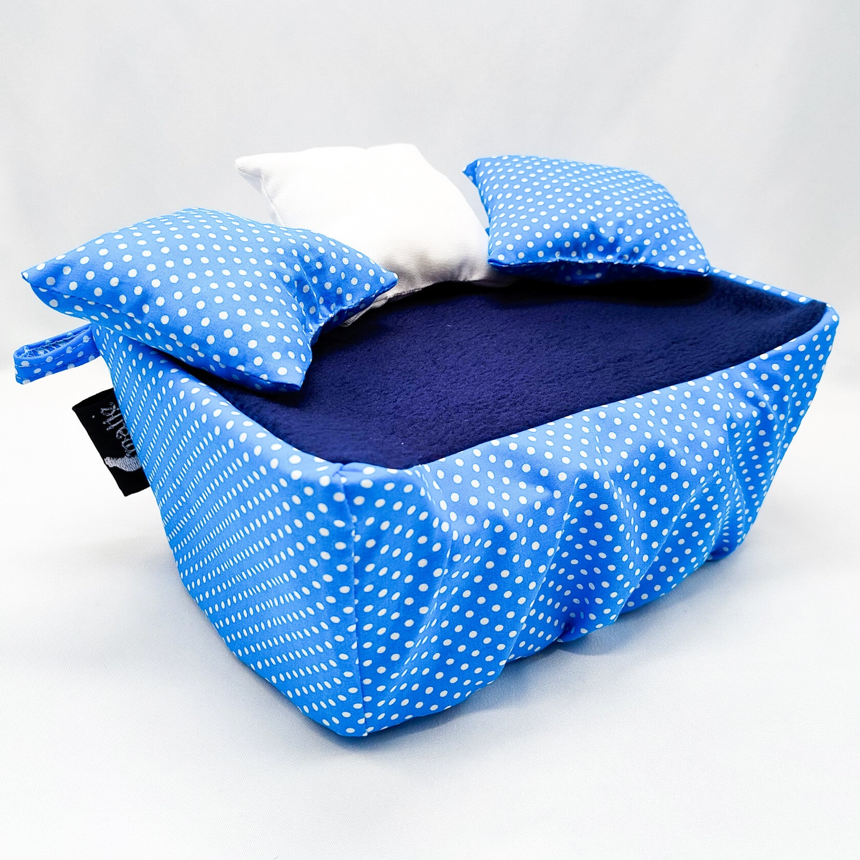 Hoes voor rattensofa maat M blauw met witte stippen (zonder bakje)