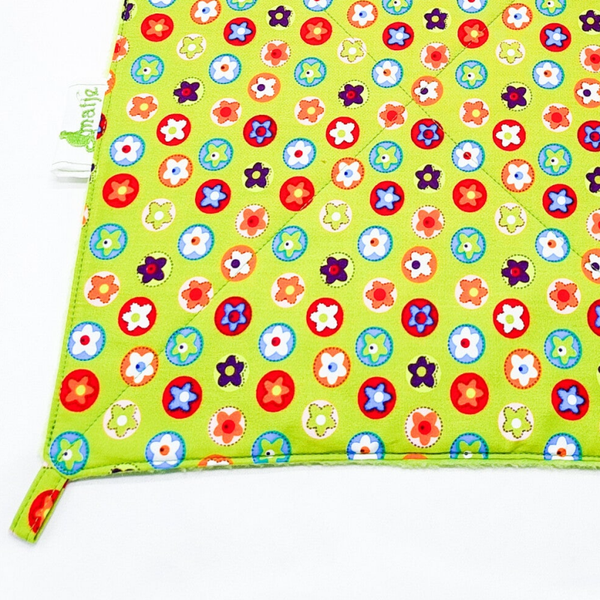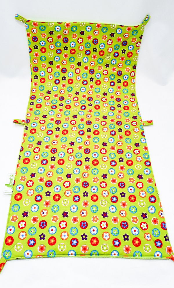 Enkele hangmat XL / 'vangnet' groen met verschillende kleuren bloemetjes