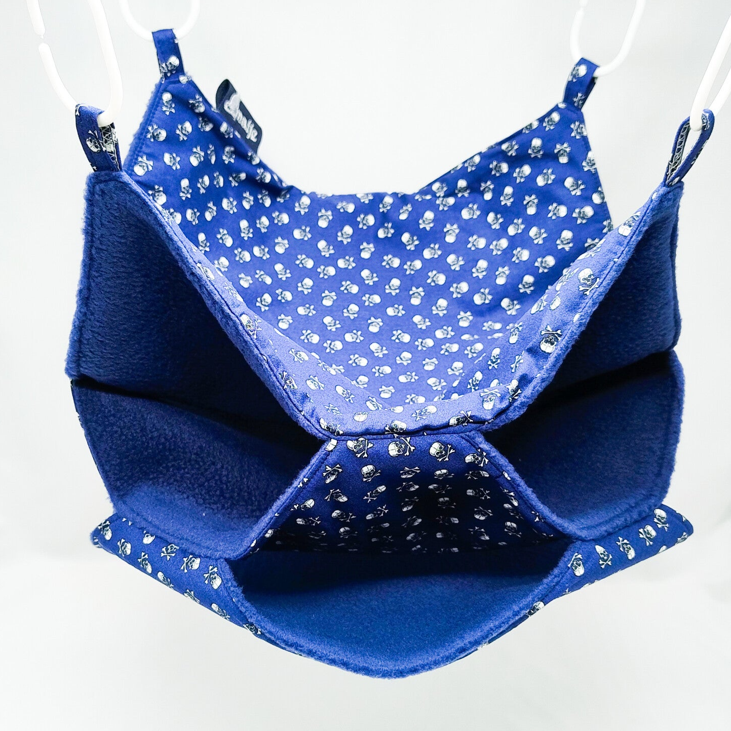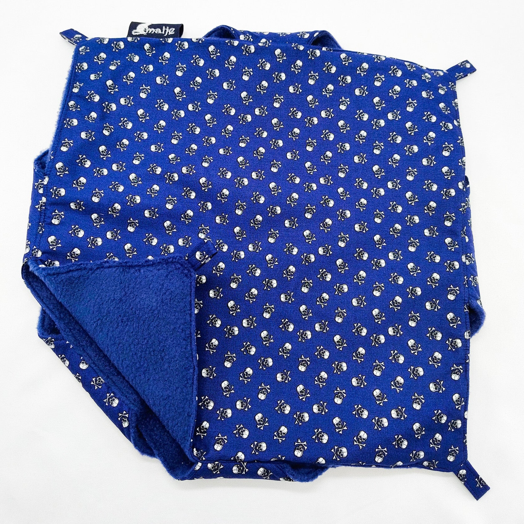Buitenkant donkerblauw met doodshoofden