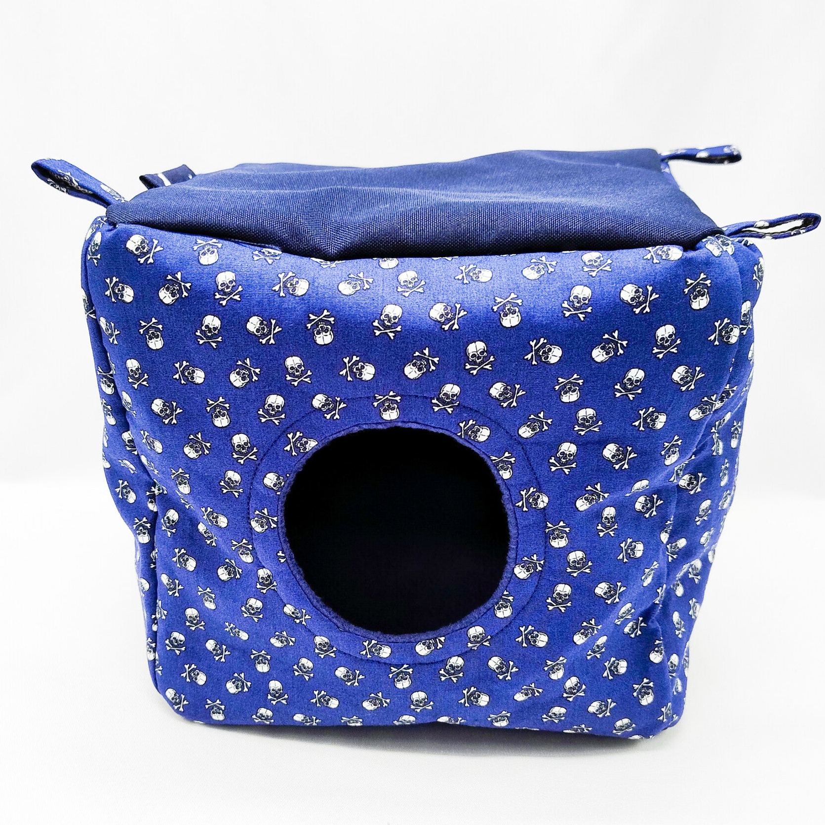 Kubus met 2 openingen donkerblauw met doodshoofden