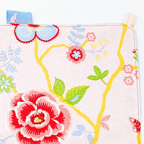 Ene zijde roze met vlinders, vogels en bloemen