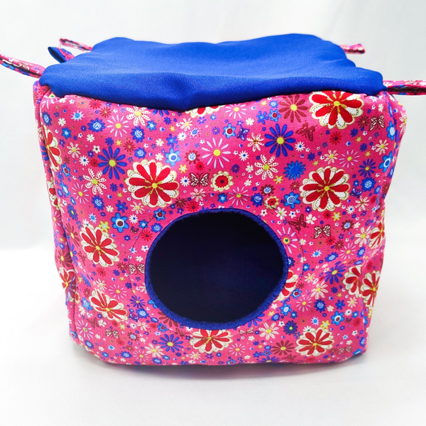 Kubus met 2 openingen en 4 stevige ophanglusjes van stof.