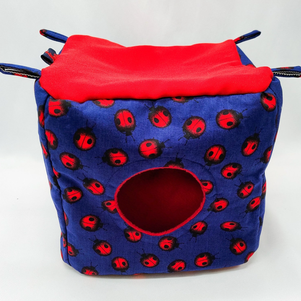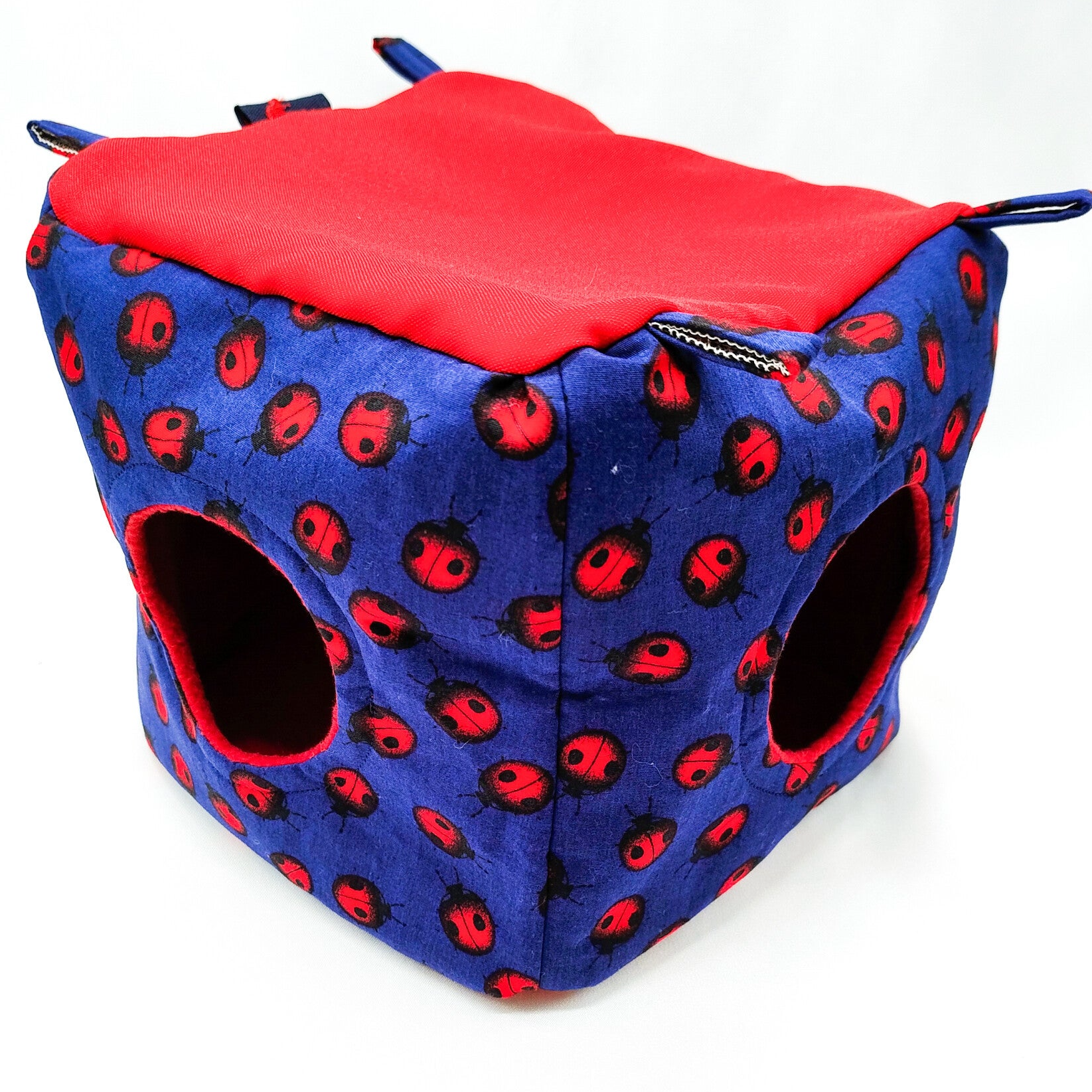 Kubus met 2 openingen donkerblauw met lieveheersbeestjes