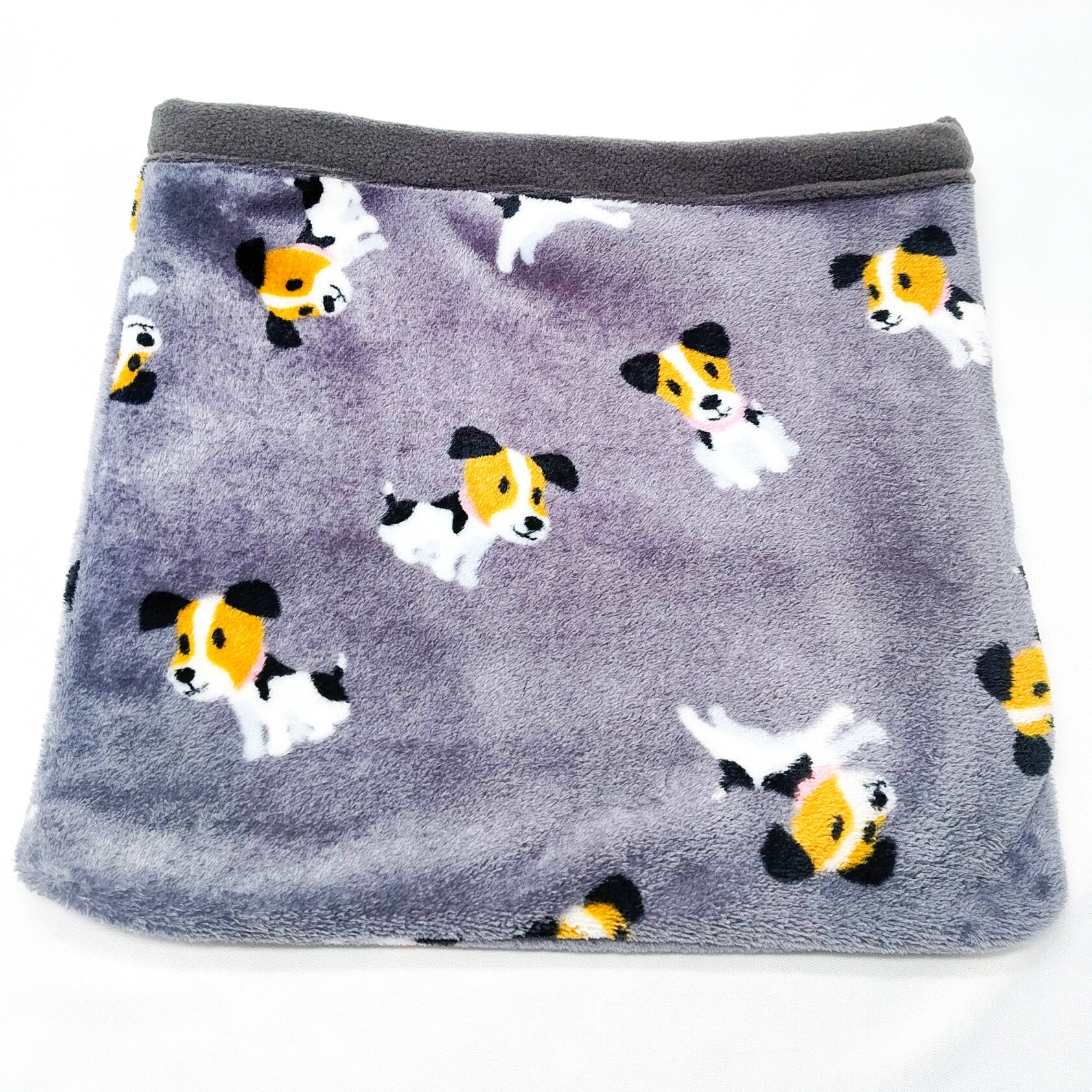 Buitenzijde: coral fleece grijs met honden
