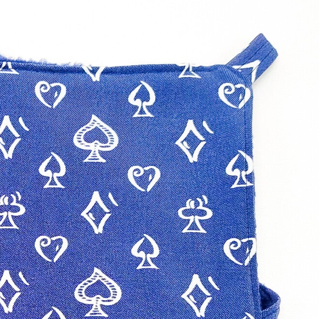 Buitenkant blauw met witte ruitjes/hartjes