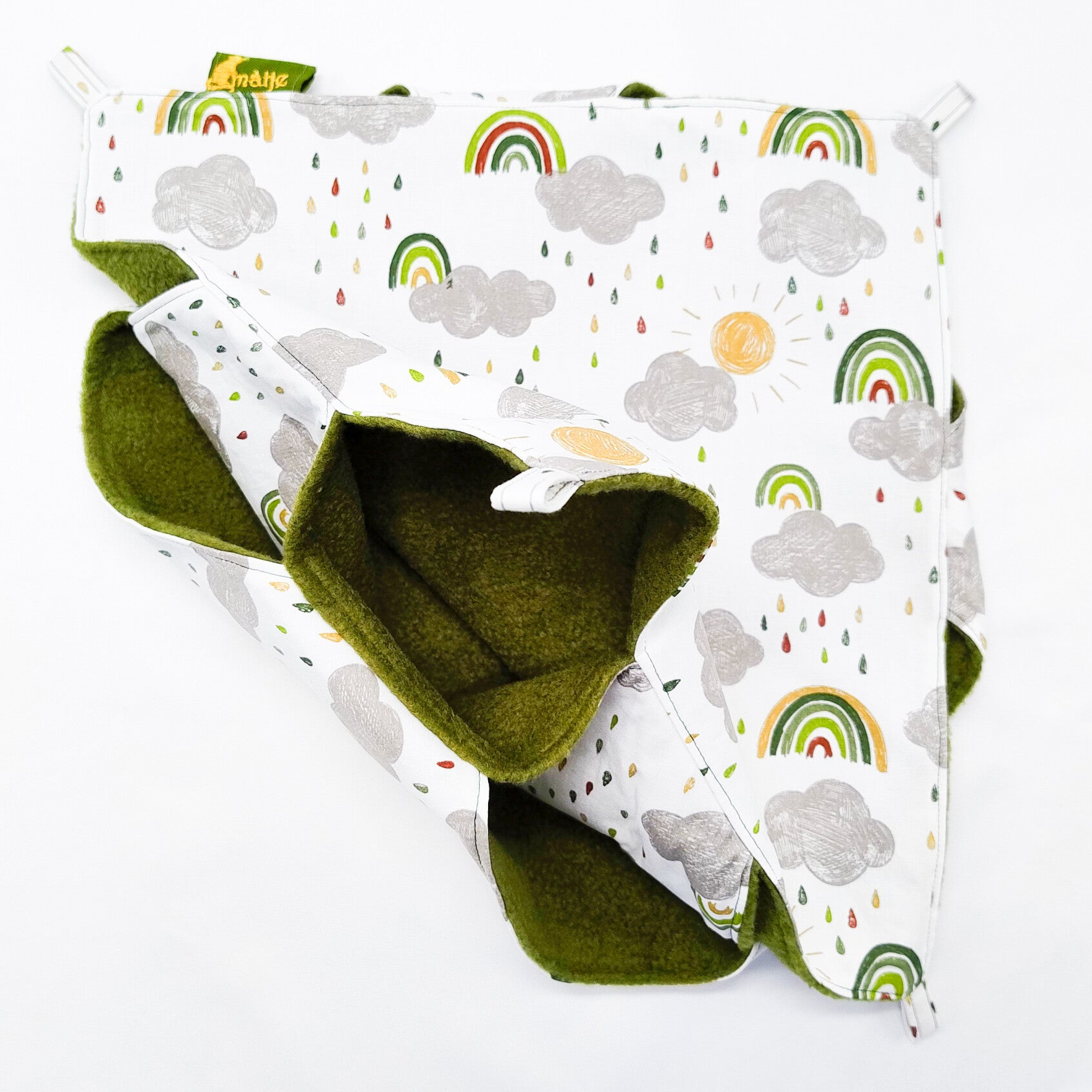 Binnenkant mosgroene fleece stof.