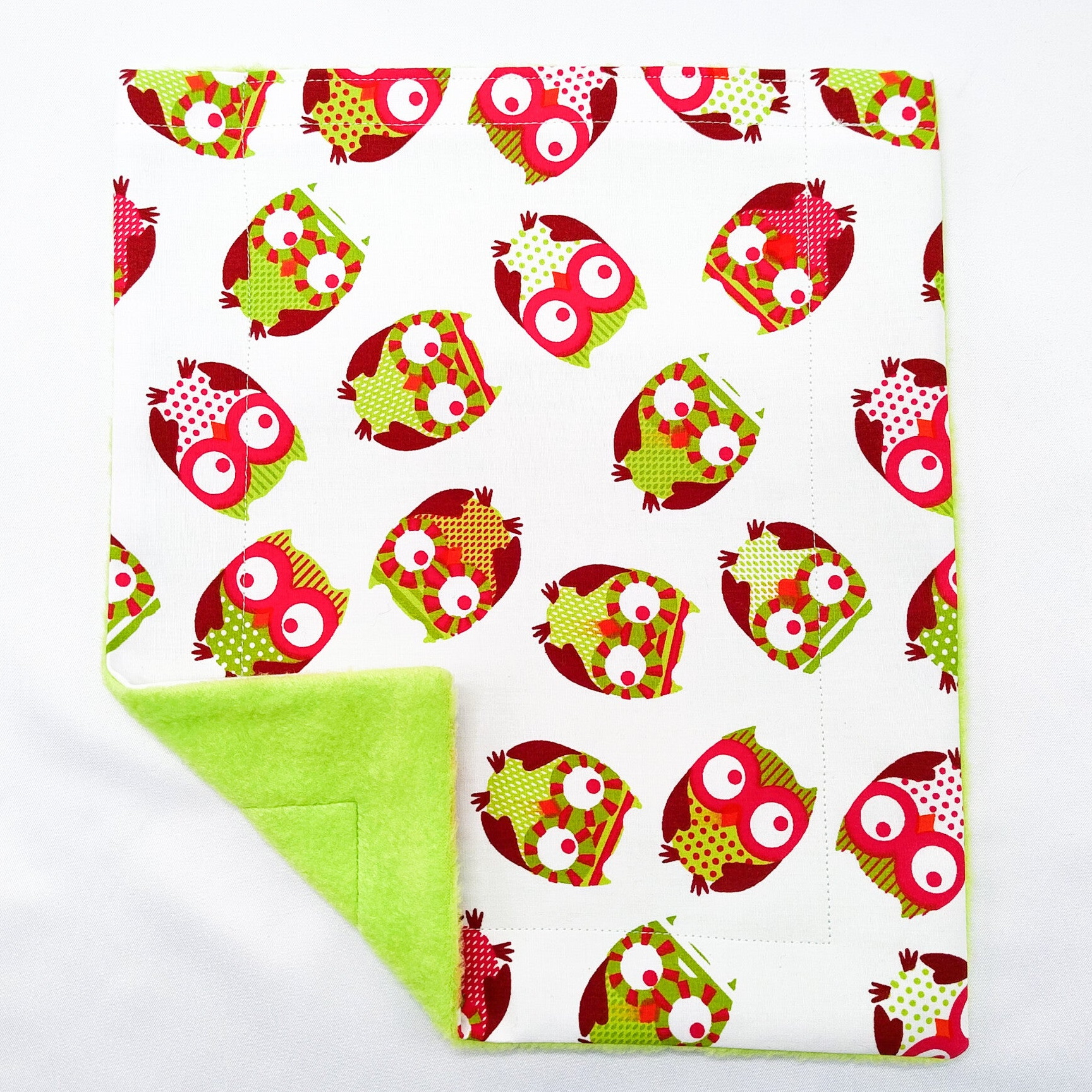 Achterzijde limegroene fleece stof.